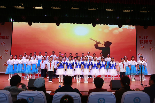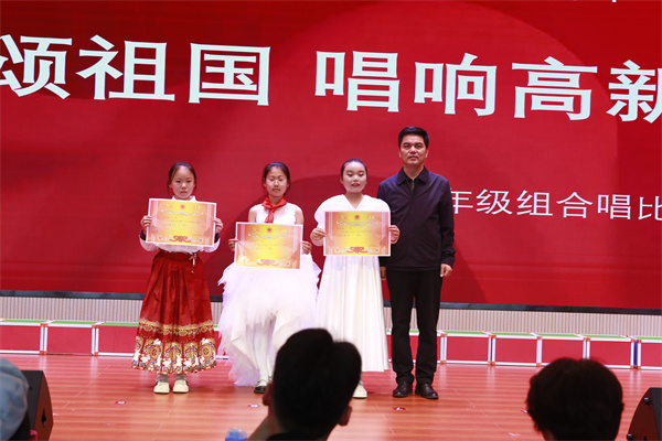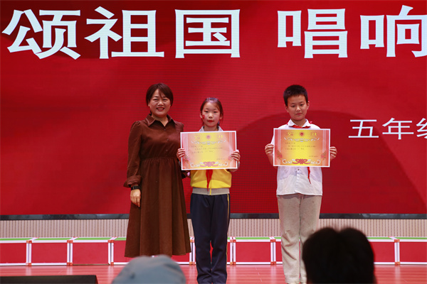 音乐教师细心挑选曲目,一个月来不断重复教学,耐心地教导每一个音符。学生们勤奋练习,持续提升演唱技艺。班主任主动跟进,密切关注进度。年级组给予高度重视,坚强支持。最终,在今日,红歌绽放,散发出耀眼的光芒。