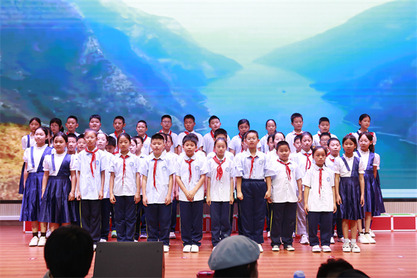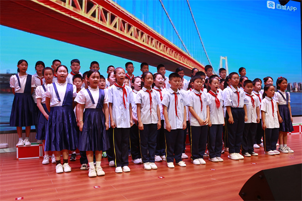 五班的学生们以雄壮的歌声演绎了《大中国》,其宽广的音域和深情的表达,深刻地传达了对祖国壮美山河和悠久历史的敬意。继而,他们以昂扬的旋律演唱了《长江之歌》,彰显了长江作为中华民族母亲河的宏伟与伟大。