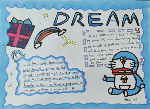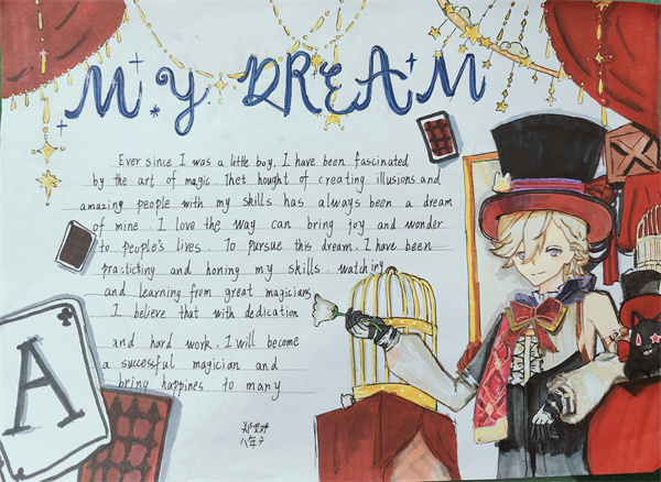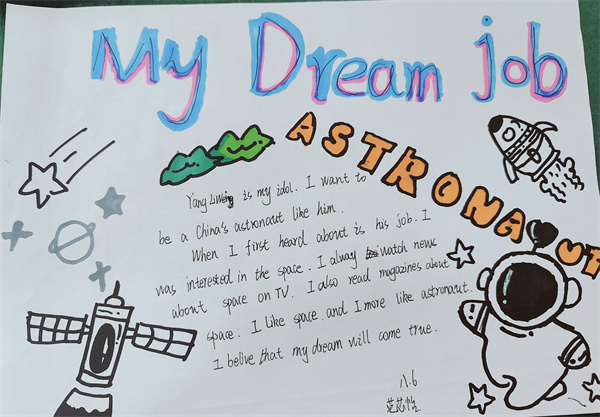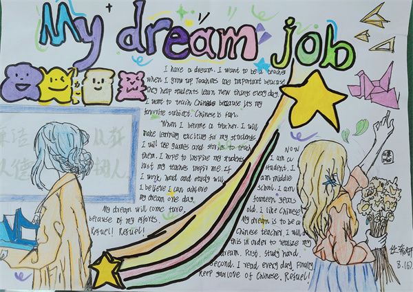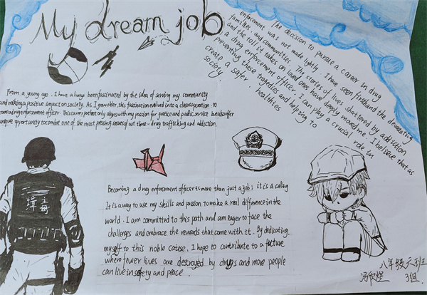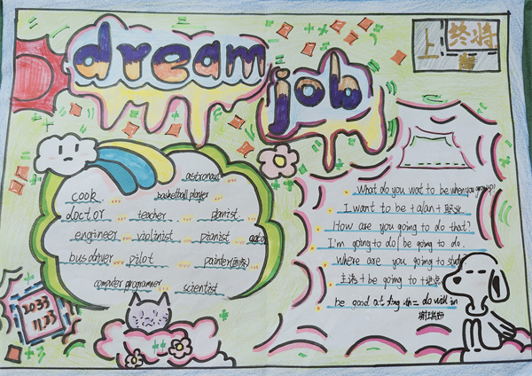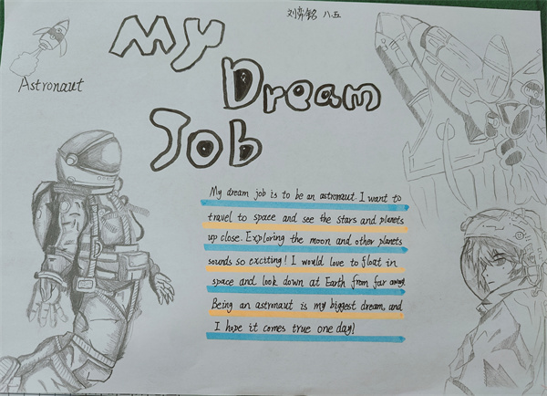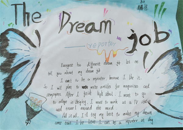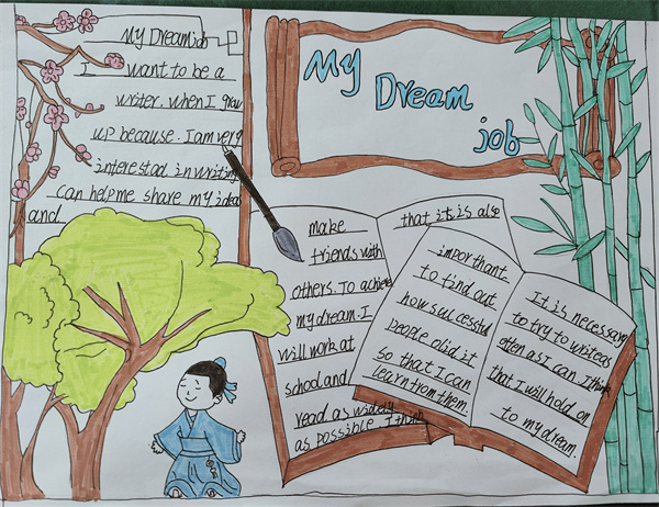 在八年级的英语学习世界里,同学们展开了一场关于“My dream job”(我理想的工作)的创意探索之旅,用手抄报的形式描绘出心中未来职业的绚丽蓝图。