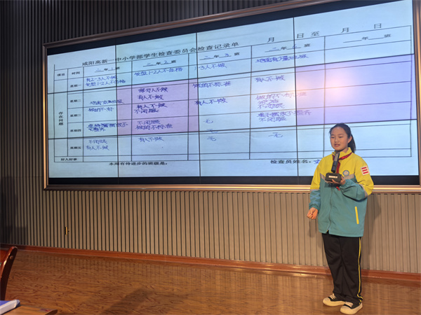 少先队大队纪律委员成梦洁同学,对纪律检查员提出新标准。她结合检查中的突出问题传经验,教方法,还要求纪律检查员需秉持高度责任心与使命感,严守校规,公正无私,共同助力校园各项管理工作。