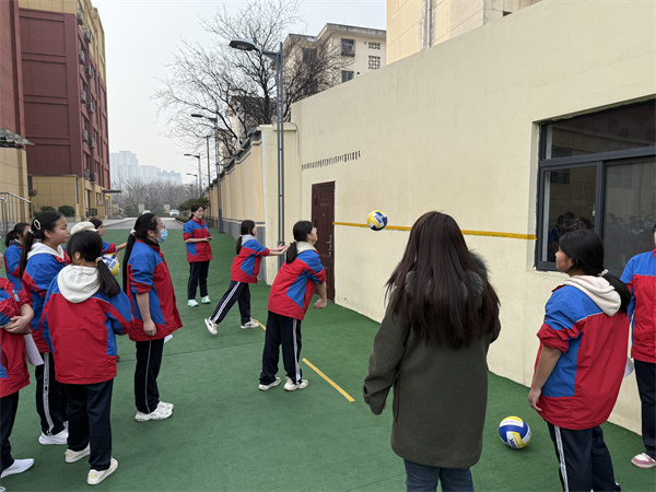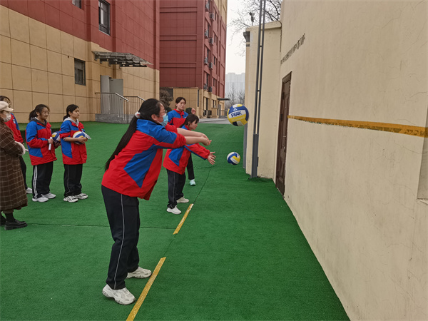 排球对墙垫球区域,排球在同学们的手臂间有节奏地跳动,他们专注的眼神、稳定的动作,诠释着对排球运动的热爱。