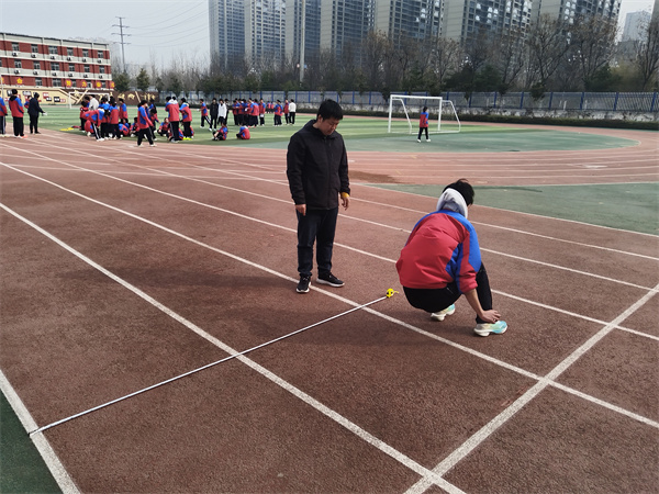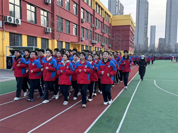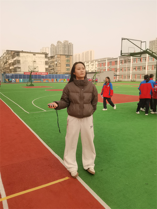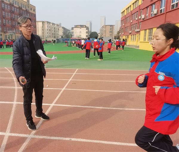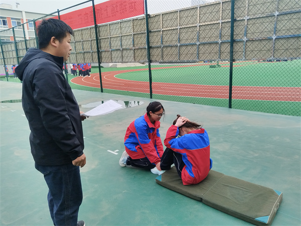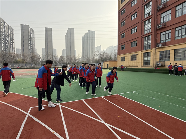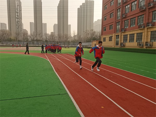 测试前,班主任和体育老师带领全体同学整齐慢跑,脚步声奏响乐章,身体渐热,激活身体机能。体育老师统一组织拉伸动作,预防损伤,从头部转动到肩部胸部腰腹部运动再到手腕脚踝活动,同学们全情投入。