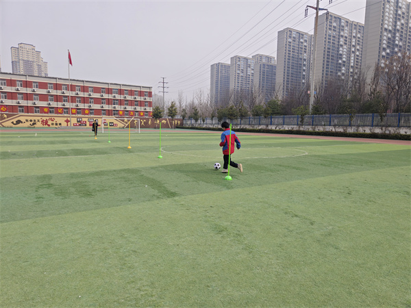 足球30米绕杆,同学们灵活地穿梭在标志杆间,精准地控制着足球的方向,展现出精湛的球技和敏捷的身手。