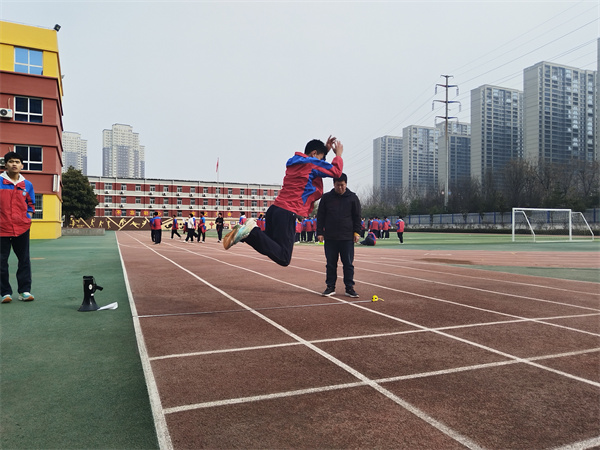 立定跳远场地上,同学们屈膝、摆臂、起跳,在空中划出一道漂亮的弧线,落地瞬间扬起的尘土,见证着他们挑战自我的勇气,展现出速度与爆发的魅力。