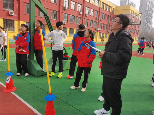 为精准把控体育阶段性训练成效,让同学们沉浸式熟悉中考体育流程和规则,咸阳市高新一中初中部教导处统筹安排,近期,体育组老师和九年级组精心组织,规范有序开展了九年级中考体育项目模拟测试。此次模考涵盖了 50 米、立定跳远、实心球、仰卧起坐、篮球、排球、足球、800 米(女)、1000 米(男)等中考体育项目,全体体育老师与九年级任课老师共同担任裁判,为考试的顺利进行保驾护航。