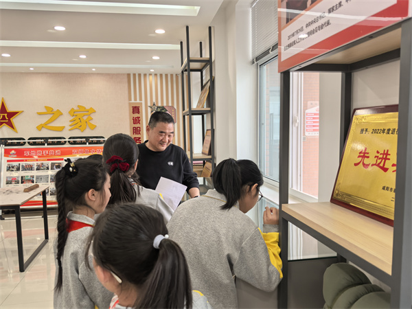 随后,同学们带着对历史的敬畏之心参观了社区红色纪念馆,寻访了“老兵之家”。在锦华社区退休老兵屈彦琪的带领下,孩子们有序地走进老兵之家,仔细观看每一件展品,感受着老兵们的生活氛围。作为一名退伍老兵,他满怀深情地讲述了往昔的故事,那些关于勇敢、坚持和牺牲的故事,深深打动了在场的每一个人。他向孩子们传递了坚韧不拔的精神力量,激励着他们珍惜当下,努力学习,为祖国的明天贡献自己的力量。