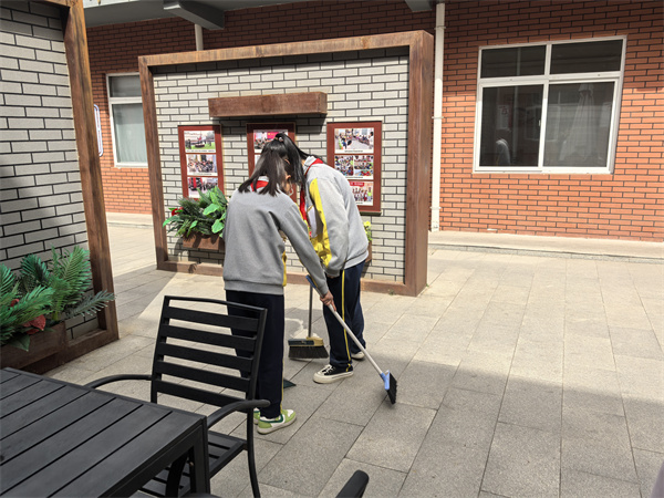 午后的阳光洒在锦华社区的每一个角落,师生们与社区工作人员迅速集结,分成多个小组,投入到紧张而有序的清洁行动中。