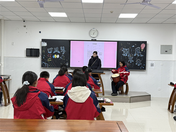展示课以齐奏形式演绎《向云端》《为你唱首歌》两首作品。课前通过气息、指法练习调整状态;演奏中创新加入非洲鼓伴奏,琴声与鼓点交融,营造出空灵与温暖的音乐氛围。课程不仅提升了演奏技能,更培养了学生的团队协作与艺术表现力。