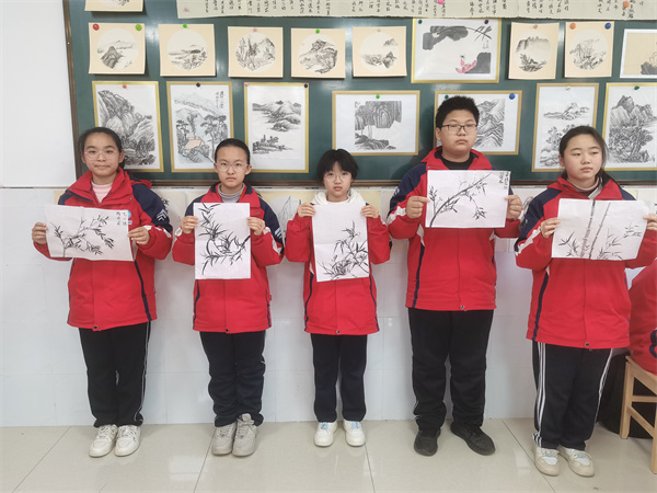 展示以山水、兰竹为题材,学生已掌握中锋用笔、墨分五色等基础技法。线条虽稚嫩但提按有章;墨色浓淡对比分明,部分作品对“留白”的运用已体现出对国画意境的初步理解,展现了社团教学循序渐进、夯实基础的有效路径。