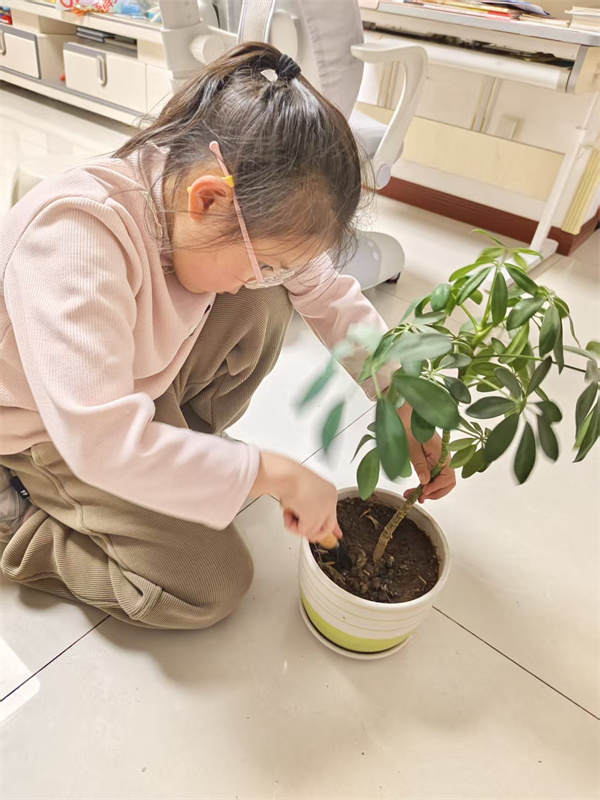 活动期间,低段学生化身“小小园艺家”,亲手栽种绿植、养护盆栽,将一盆盆生机勃勃的小盆栽布置进教室,用稚嫩的双手为教室增添绿意与温馨。