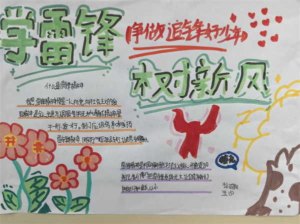 高年级学生则以创意形式传承雷锋精神,在教室一角绘雷锋故事手抄报、讲述雷锋动人故事,让雷锋精神在笔墨与分享中深深扎根;