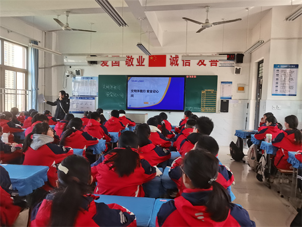 班主任们借助精心制作的 PPT,将交通安全知识娓娓道来。从步行时严格遵守交通信号灯、走人行道,到骑车时佩戴头盔、不逆行,再到乘车时系好安全带、不将身体伸出窗外,每一个细节都关乎生命安全。同学们认真聆听,不时点头,深刻认识到遵守交通规则是对自己生命负责,也是维护交通秩序的必要之举。