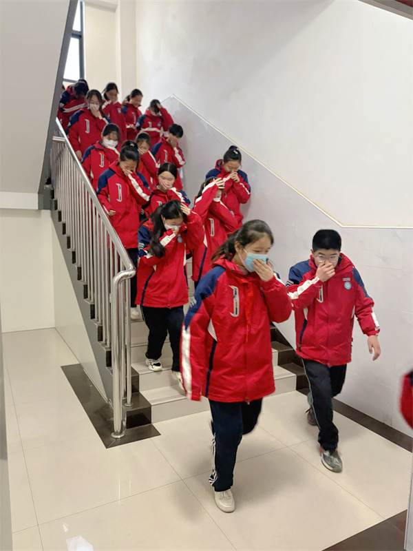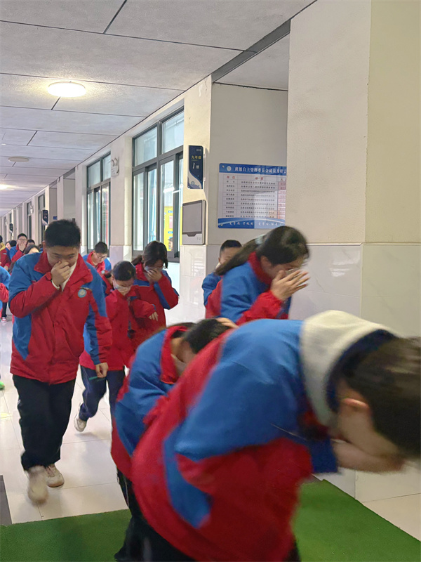 刺耳的警报声中,演练正式启动。老师们第一时间组织学生,按照预定的疏散路线有序撤离。同学们紧紧捂住口鼻,低姿前行,尽可能减少烟雾的吸入。在楼道里,大家步伐紧凑却不慌乱,相互提醒、相互协助,沿着墙壁快速下楼。