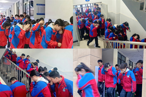 每个楼梯口和关键位置都有老师维持秩序,确保疏散过程安全顺畅。尽管现场气氛紧张,但在大家的共同努力下,全校师生在短短几分钟内就成功疏散到了操场集合点,全程紧张而不慌乱,迅速而守秩序。