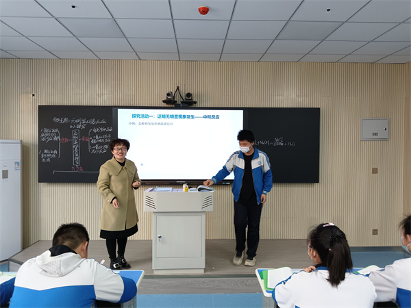 理化生教研组组长习曼利老师上的是微专题复习课《探究无明显现象反应的发生》,此专题是2022版化学新课程标准中“科学探究和化学实验”学习主题,思维容量大,但能充分培养学生的学科素养。