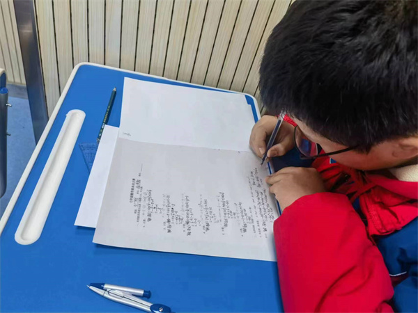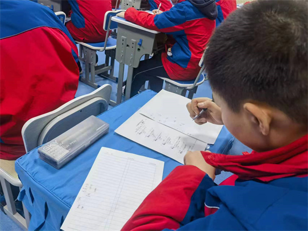 比赛现场,同学们以饱满的热情投入竞赛,细心又快速地计算着,一副舍我其谁的王者模样……那一双双巧手握着笔,一串串数字就这样跃然于纸上。