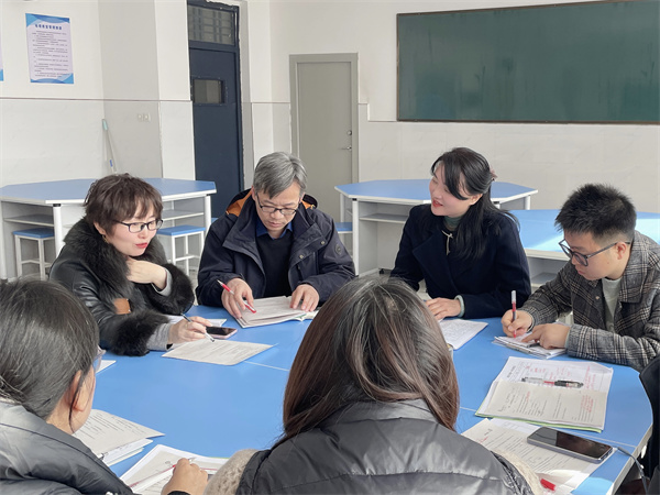 课后,教研组就本节课进行了研讨。首先,曹老师先总结了本节课的优点以及需要改进调整的地方。王潇老师结合课堂评价要求,以曹老师的示范课,对标进行学习和解读。