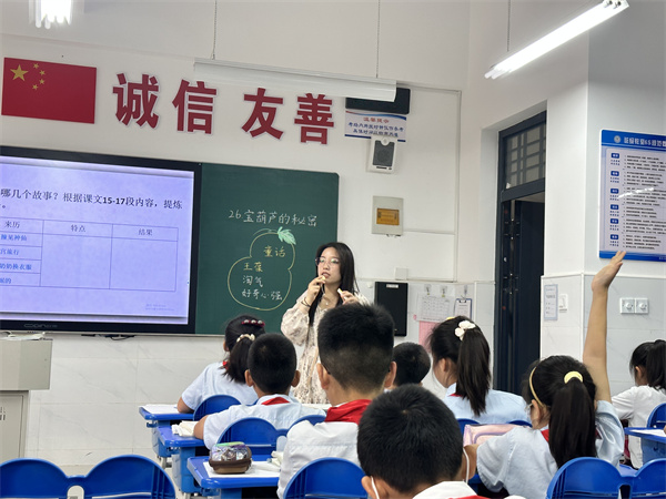 成静雯老师巧妙创设情景,引领学生走进《宝葫芦的秘密》。课堂重难点突出,教学设计紧扣单元语文要素,教学环节完整且紧凑,注重以“先扶后放”式的教学思路引导学生先学会创设鲜明的人物形象,再发挥丰富的想象力编写童话故事,带领学生真正做到学以致用。课堂上善于运用合作探究教学方法,既充分尊重学生的学习主体地位,又体现教师在教学中的 引导者、组织者的角色。教学评价及时,具有针对性,善于鼓励与表扬学生,及时肯定学生的发言,营造了宽松和谐课堂气氛并调动学生学习积极性!