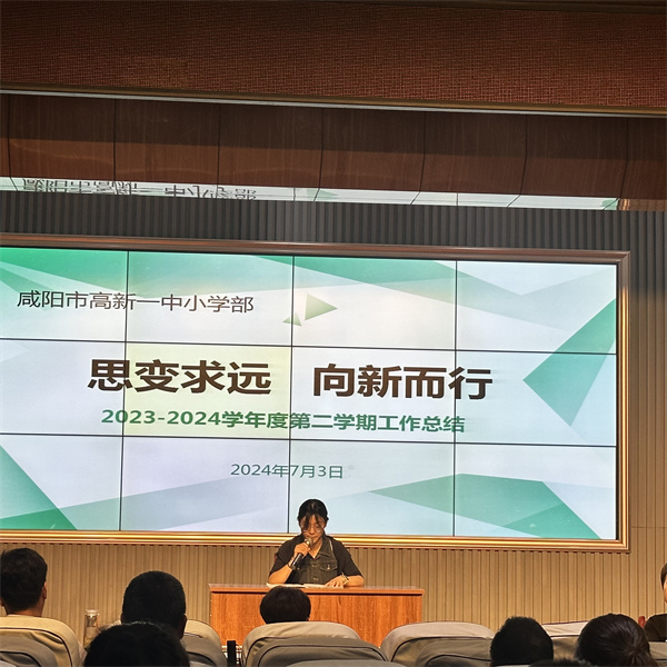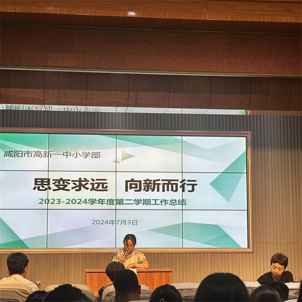 忙碌与收获相伴,坚持与快乐相守,繁忙又充实的第一学期已经落下帷幕,在过去的一个学期里,我们小学部捷报频传、惊喜不断,可以说是收获满满。为了更好地开展下一步工作,7月1日至3日,咸阳市高新一中小学部召开以“思变求远,向新而行”为主题的期末总结大会。小学部全体教师参加,此次总结,既是对这一学期各项工作的小结和反思,也为今后学校各项工作更好地开展指明了方向。