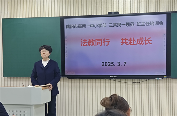 在教育的道路上,班主任是学生成长的重要引路人,他们不仅是知识的传播者,更是学生心灵的守护者。为了进一步规范班主任日常教育工作,推动学校教育管理水平的提升,3月7日,咸阳市高新一中小学部举行了“三常规一规范”班主任培训会。本次培训由小学部德育主任郭晓阳主持,副校长程颖斌带领全体班主任学习日常常规。