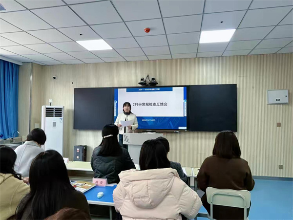 教导处四位主任分别针对二月份在德育、教学、教研以及年级组的常规工作中发现的优点及不足之处进行了细致高效的反馈。