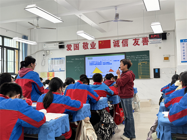薛宁博老师围绕“问题链设计的梯度性”“探究活动的有效性”进行重点说明,介绍了如何通过递进式问题激发学生思维,如何通过动手操作让学生在实践中建构知识,并提出了在后续教学中进一步优化探究任务分层设计的思考。蒙燕老师从教材分析、学情把握、教学目标设定、教学过程设计等方面展开阐述,重点说明如何通过“生活情境—直观感知—探究推理—应用拓展”的教学路径,落实“思维课堂”中对学生空间思维和逻辑能力的培养,同时反思了课堂中在小组探究时间分配上的优化方向。
