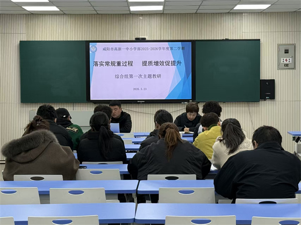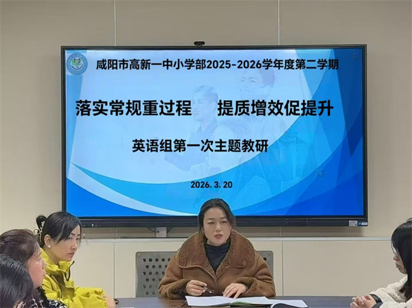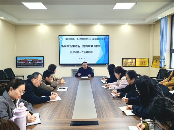 在深化课堂教学改革、推动教育高质量发展的背景下,咸阳市高新一中小学部以“落实常规重过程,提质增效促提升”为引领,开展了本学期首次主题教研活动。活动由教导处统一部署,教研主任统筹主持,语文、数学、英语及综合学科分组推进,全体教师共同参与。