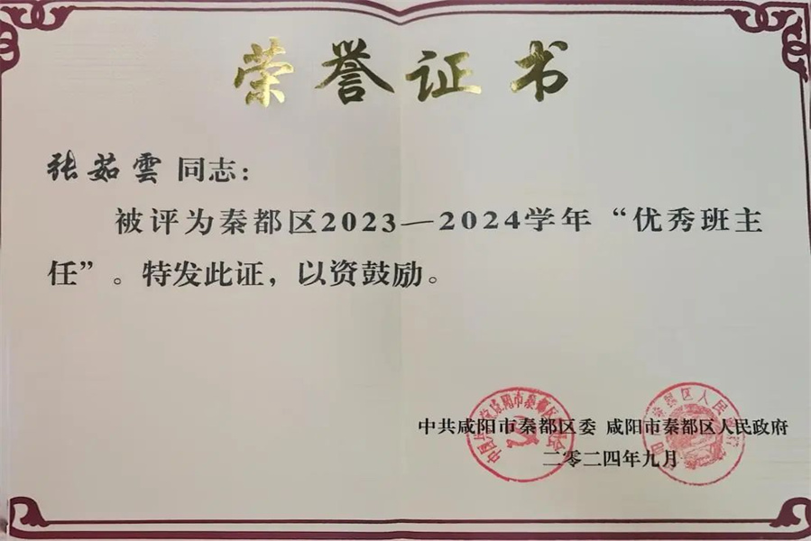 多次获得校级“优秀教师”“骨干教师”称号。第三届秦都区“名班主任”称号,2024年被评为秦都区“优秀班主任”。近几年主持课题两项,多篇论文及教学设计获区级奖励。