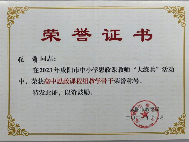 张萌,高中政治教师,毕业于陕西师范大学思想政治教育专业,教育硕士。咸阳市思政课程“教学骨干”,咸阳市“三百”提升活动综合优秀个人,秦都区“优秀教师”,秦都区中小学思政课教学标兵。教学设计获首届全国高中思想政治议题式教学特等奖、陕西省第二届中小学教育教学成果评选一等奖,论文获市级一等奖;主持完成省级课题一项,参与多项省市区级课题;所带班级获得“先进班集体”称号,获评“优秀班主任”等。