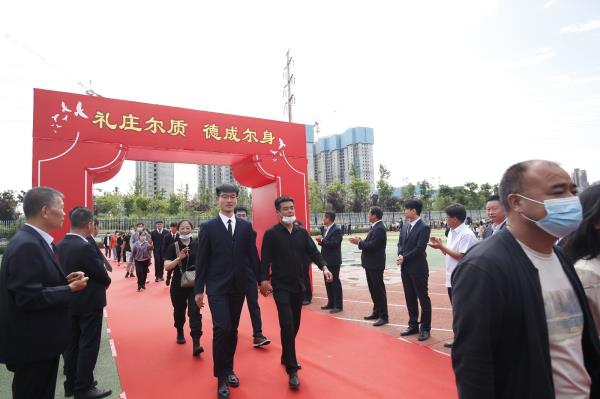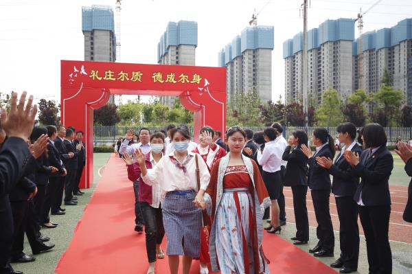 走过孩提的幼稚,挥别垂髫的无知,回望束发的青涩,笑别及笄的疑迟。5月23日,咸阳市高新一中举办2021届成人礼暨毕业典礼,校长于建营,副校长文广俊、李江河、程颖斌、景晓、廖荣,高三年级全体老师以及2021届全体高三学生及家长相聚操场,共同见证学子们的及笄之礼。