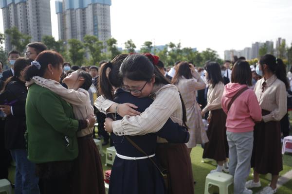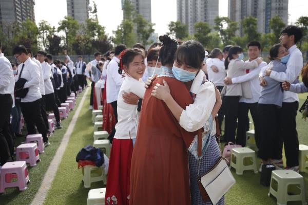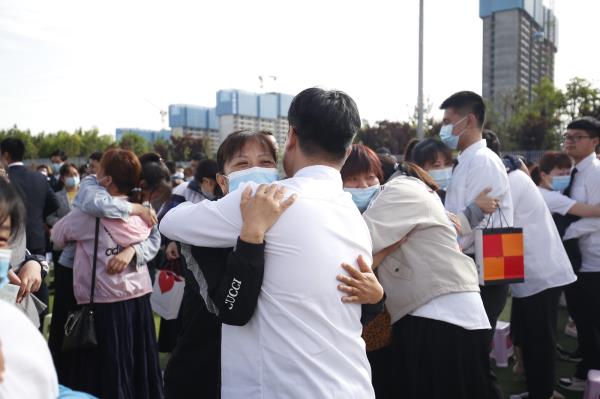 拥抱父母,感谢父母给予生命,感谢他们十八年来的辛勤付出;致敬老师,感谢老师们三年来的谆谆教导,细心培养。