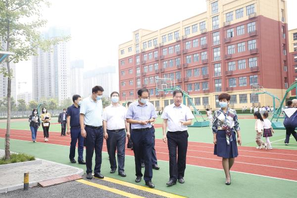 张海文一行在咸阳市高新一中校长于建营的带领下,通过听取汇报、实地查看等方式,详细了解了疫情防控、文明城市创建、校园环境、基础设施建设、师资队伍配置、学生年级结构和食堂供餐等情况。
