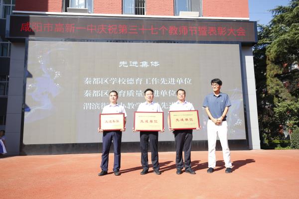 秦都区政府总督学王玉昆向学校颁发了秦都区学校德育工作先进单位、秦都区教育质量先进单位、渭滨街道办教学质量先进集体等奖牌。