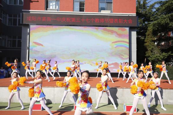 热情奔放的啦啦操表演拉开了大会的帷幕,孩子们用动感欢快、活力四射的舞姿,向教师节献礼。咸阳市高新一中的教师们带来了朗诵《万世师表》,表演铿锵有力、朝气蓬勃,把孔子的仁者爱人、为政以德、有教无类、因材施教等思想基因展现的淋漓尽致,赢得现场阵阵掌声。