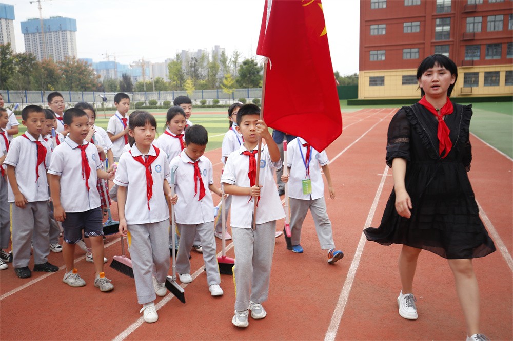 活动开始前,少先队大队辅导员冯娟宣读倡议书,她倡导志愿者们要自觉参与文明城市创建成果巩固提升活动,不乱扔垃圾、不随地吐痰,积极传递文明行为,带动他人共同参与;积极劝导文明行为,推动社会共同行动;积极参与节能工作,做环保小卫士;共同为十四运的顺利举办增光添彩。她号召大家从现在行动起来,大力弘扬和继承“奉献、友爱、互助、进步”优良传统,不断增强劳动实践能力、自我管理能力和爱党、爱国、爱校意识,争做德智体美劳全面发展的社会主义建设者和接班人。