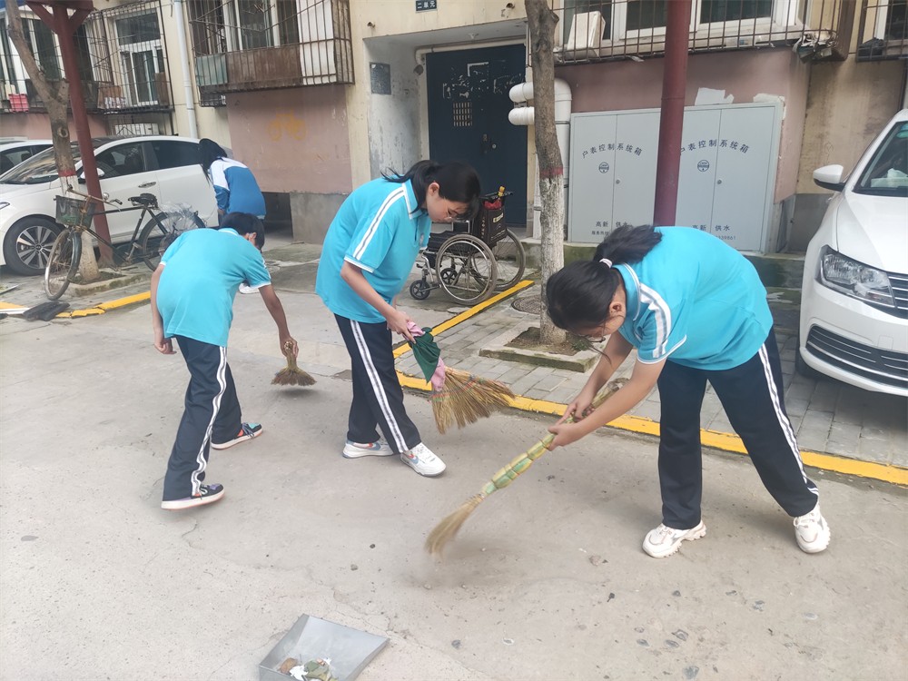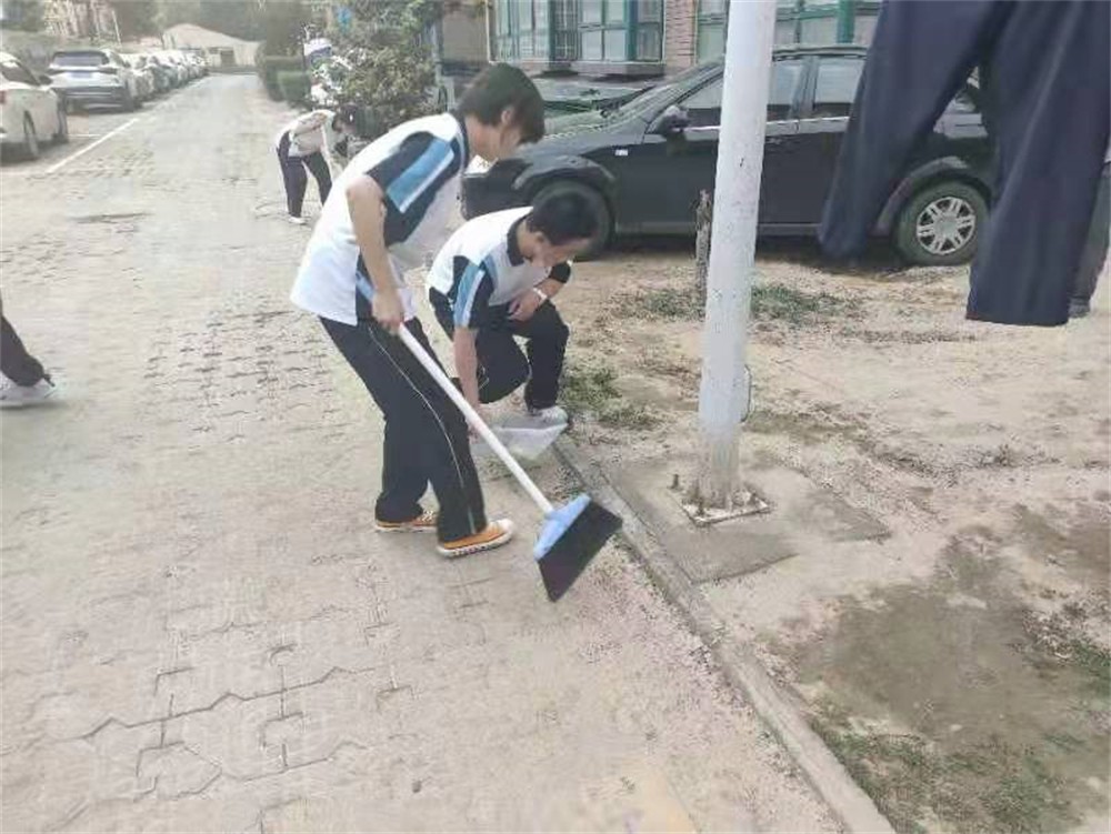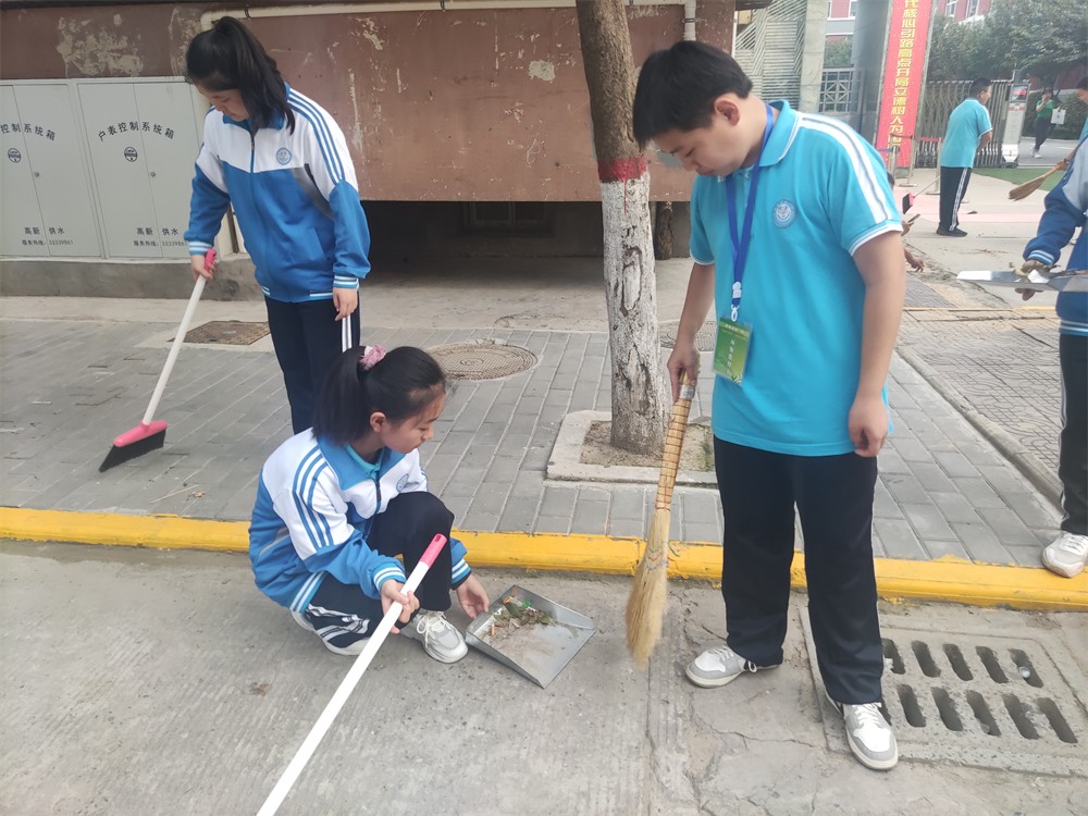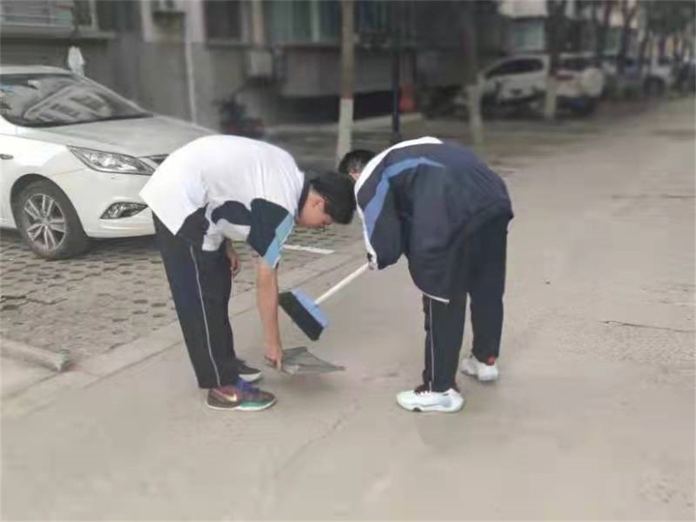 随后,在带队老师的带领下,志愿者们兵分三路,分别打扫学校门口小区内的三条道路。大家拿着扫把、簸箕等工具,认真清扫垃圾,不放过任何一个死角。伸手、弯腰、捡拾等一系列的小举动,充分展现了高新学子良好的精神风貌和道德行为。在大家的共同努力下,校门口的道路变得干净整洁,旁边的行人们也纷纷称赞,投来赞许目光。