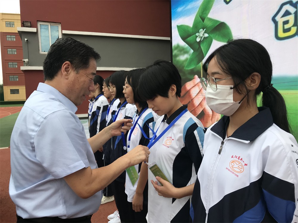 咸阳市高新一中校长于建营、副校长杨东、李江河分别向校园环保监督岗成员授牌。于校长还特别叮嘱环保监督岗的成员们,一定要发挥模范带头作用,尽好监督职责,劝导大家积极参与垃圾分类、志愿服务和环境保护活动,制止不文明行为,做精神文明建设的先行者。