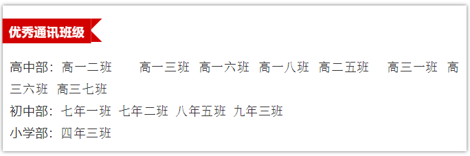 在本次运动会期间,以下班级表现非常优秀,特此表扬: