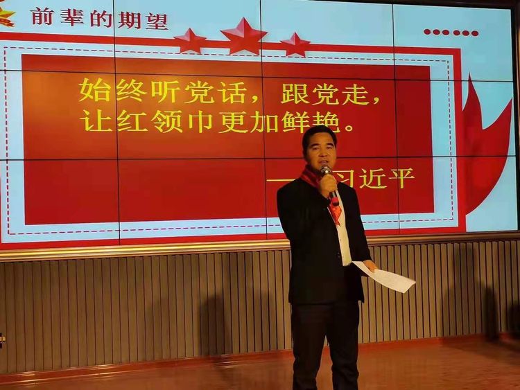 咸阳市高新一中副校长李江河对新入队的少先队员们表示祝贺,同时希望大家时刻铭记习近平总书记对少先队员的期望和要求,“从小学先锋、长大做先锋”,时刻把祖国和人民放在心中,从小听党话、跟党走,勤奋学习、快乐生活,积极践行社会主义核心价值观,争做新时代好队员!