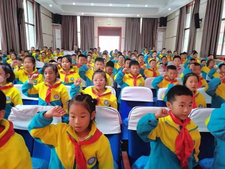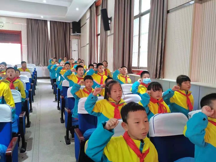 在中队辅导员李秀老师的带领下,所有少先队员在队旗下庄严宣誓,立志为共产主义事业贡献力量!