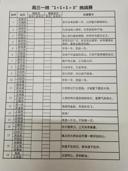 图为高三一班学业目标挑战赛,通过目标激励的方式,激发学生的学习斗志。