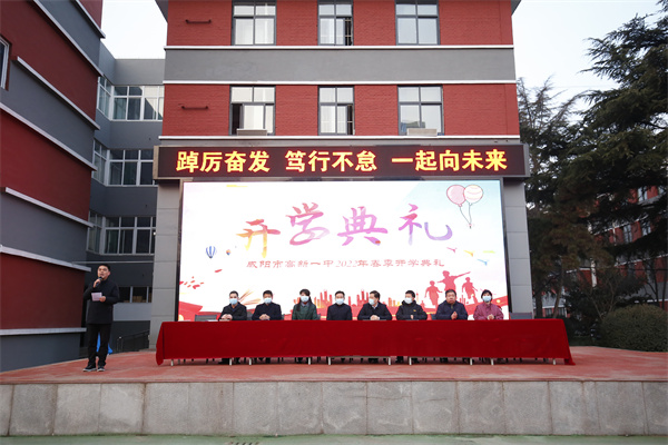 从春天出发,携手向未来。2月21日上午,咸阳市高新一中4000名师生齐聚操场,带着灿烂的笑脸,怀着激动的心情,隆重举行2022学年度春季开学典礼。咸阳市高新一中党总支书记、校长于建营,副校长景晓、廖荣、杨东、文广俊、李江河,校团委书记王中社、少先队大队辅导员冯娟等出席典礼。活动由副校长程颖斌主持。