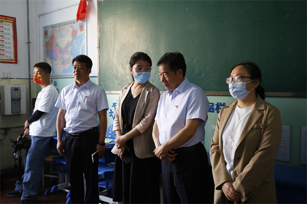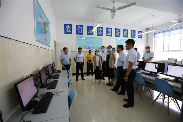 刘处长一行深入课堂,走进云校,现场观看了“双师班”线上线下相互融合的教学模式;通过实地查看、现场交流的方式,了解了学生生涯教育中心、大数据分析中心、高考选课走班等工作的具体情况。