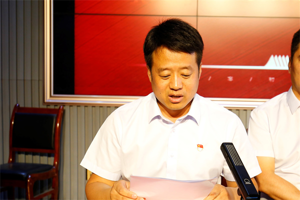 副校长程颖斌宣读秦都区教育系统《关于表彰先进基层党组织、优秀党务工作者和优秀共产党员的决定》和咸阳市高新一中《关于表彰优秀党务工作者、优秀共产党员、“学习强国”学习标兵、“学习强国”学习先进个人和“学习强国”学习优秀学员的决定》。