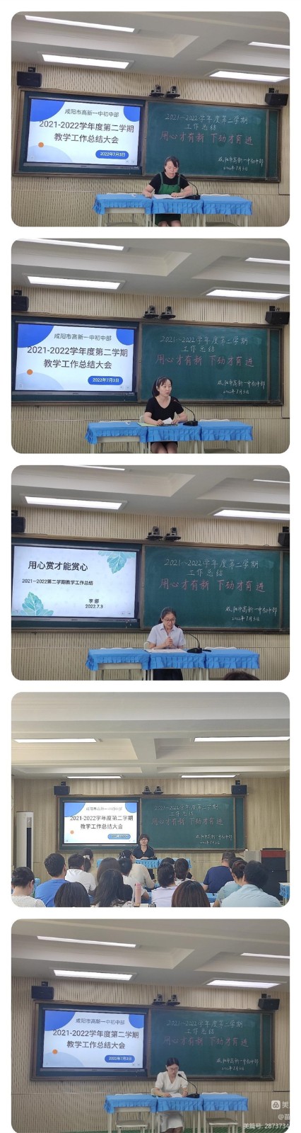 七月是教育收获的季节,本学期的教育教学工作已落下帷幕。“吾日三省吾身”,一学期的工作经验更需要总结反思,从而为后期的工作指明方向。7月3日,咸阳市高新一中初中部召开期末工作交流总结会。会议由教研主任龚莉莉主持。