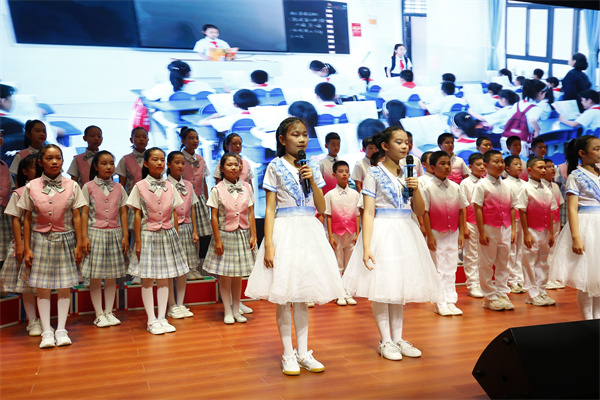 大会在少先队员《梦想成就未来》的献词节目中拉开帷幕。一句句真挚的祝福,一句句赞美的歌曲,孩子们用幽默风趣表演和铿锵有力的语言,表达着对老师的拳拳热爱之情,赢得现场热烈的掌声。