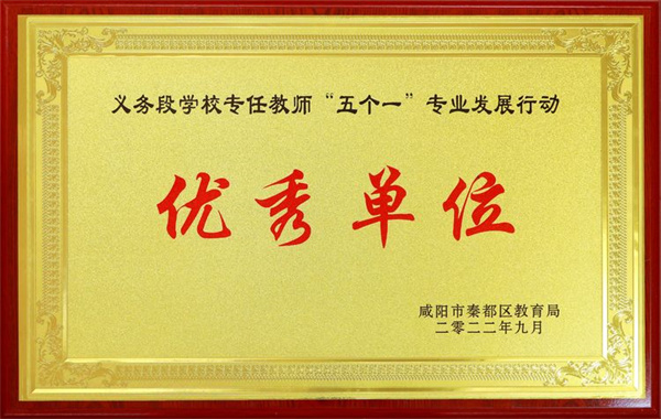 咸阳市高新一中在2022年义务段学校专任教师“五个一”专业发展行动中被咸阳市秦都区教育局授予优秀单位称号。