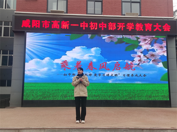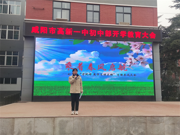 为了规范学生言行举止、增强纪律观念和安全防范意识,促进其养成守纪律、爱学习、讲文明的好习惯,形成良好的学风、班风、校风,2月7日,咸阳市高新一中初中部召开学生习惯养成大会,大会由初中部教研主任段海英主持,初中部全体师生参加。