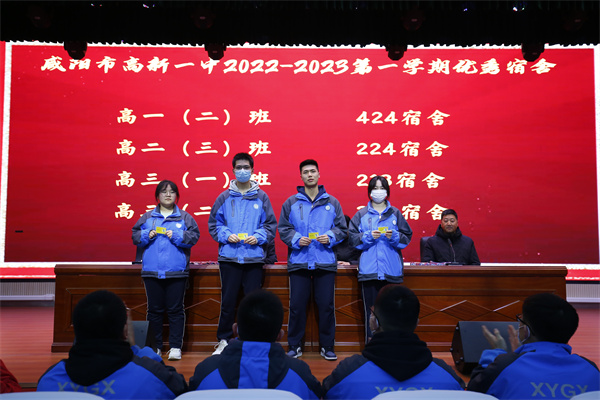 宿舍管理科科长崔立群详细解读了《咸阳市高新一中宿舍检查扣分细则》和《咸阳市高新一中宿舍积分奖惩细则》,从纪律、卫生、安全等方面向全体住宿生作了全面细致的说明,同时要求大家要严格遵守宿舍管理条例,严禁僭越红线。