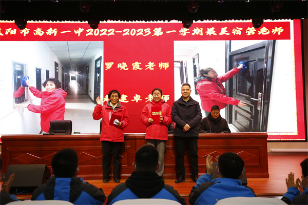 大会首先对2022-2023学年度第一学期获奖的优秀宿舍、优秀住宿生、最美宿管好妈妈进行了颁奖。